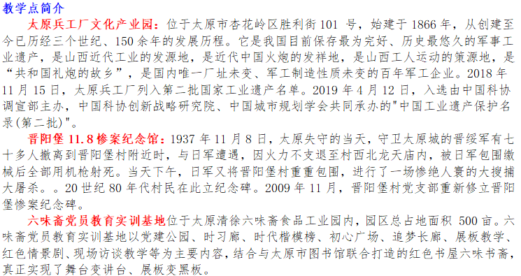 太原兵工厂、11.8惨案纪念馆、六味斋党员教育实训基地一日