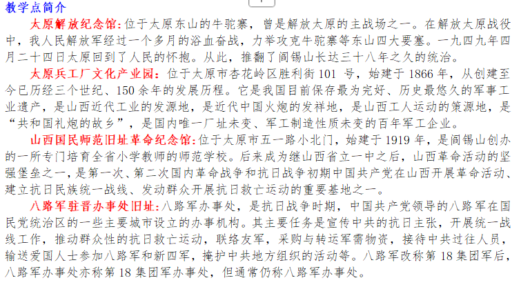 太原解放纪念馆、1898太原兵工厂、国民师范旧址、八路军驻晋办事处旧址一日