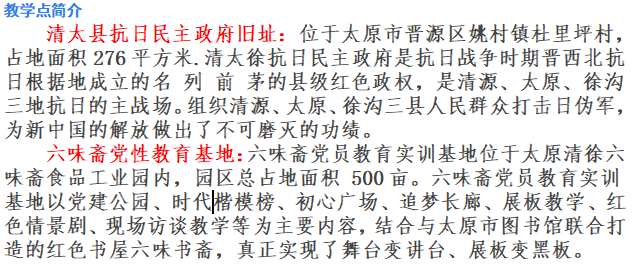 清太徐抗日民族政府旧址、六味斋党性教育基地