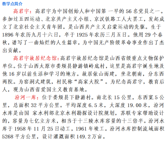 高君宇故居纪念馆、汾河水库一日
