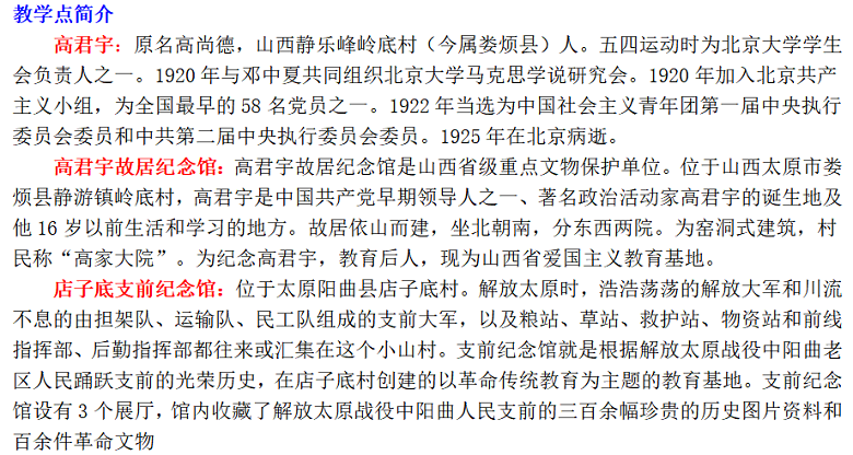 娄烦高君宇故居纪念馆、店子底解放太原支前纪念馆一日