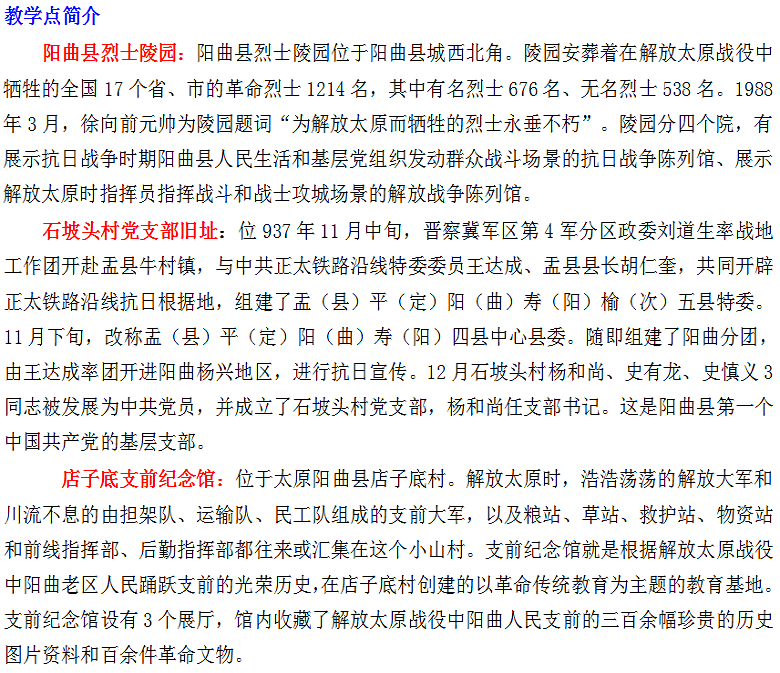 阳曲烈士陵园、石坡头村党支部旧址、解放太原支前纪念馆一日