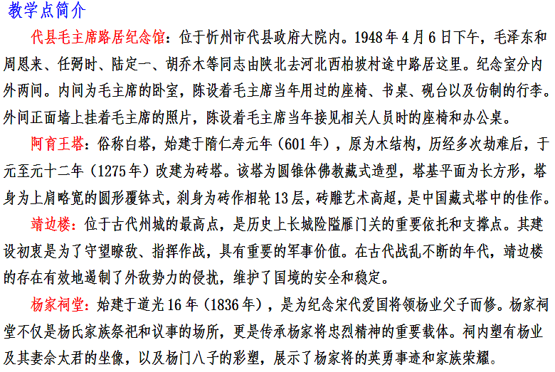 忻州代县毛主席路居馆、阿育王塔、靖边楼、杨家祠堂