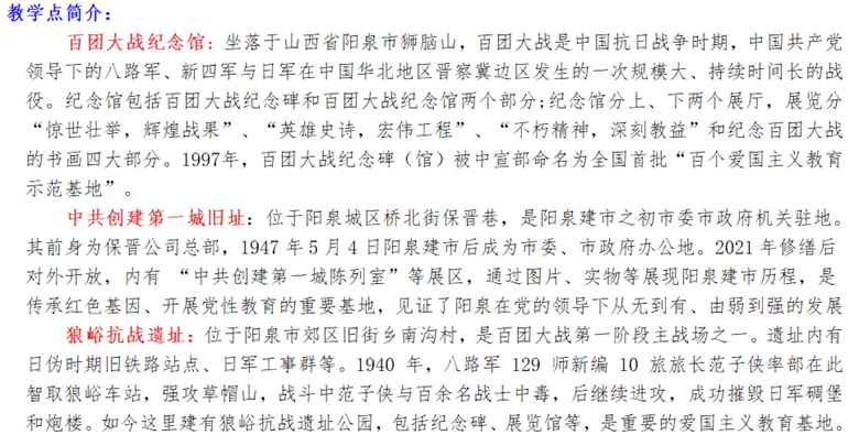 百团大战纪念馆、中共创建.第.一城旧址、狼峪抗战遗址一日