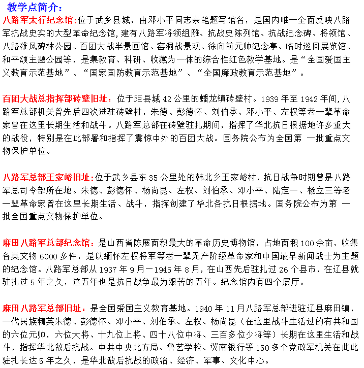 武乡太行纪念馆、砖壁旧址、王家峪旧址、左权麻田八路军总部纪念馆二日