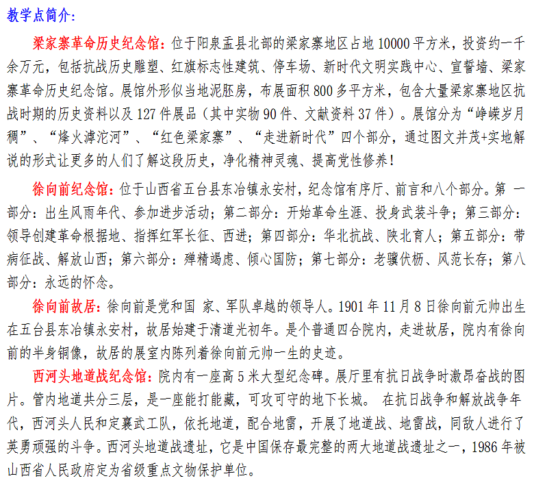 梁家寨革命历史纪念馆、徐向前纪念馆、故居、西河头地道战纪念馆二日