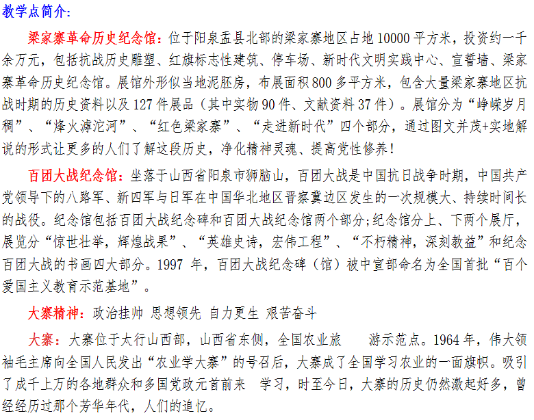 梁家寨革命历史纪念馆、百团大战纪念馆、大寨二日