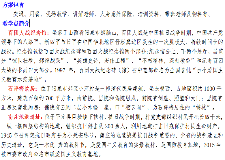 阳泉百团大战纪念馆、石评梅纪念馆、平定南庄地道战遗址二日