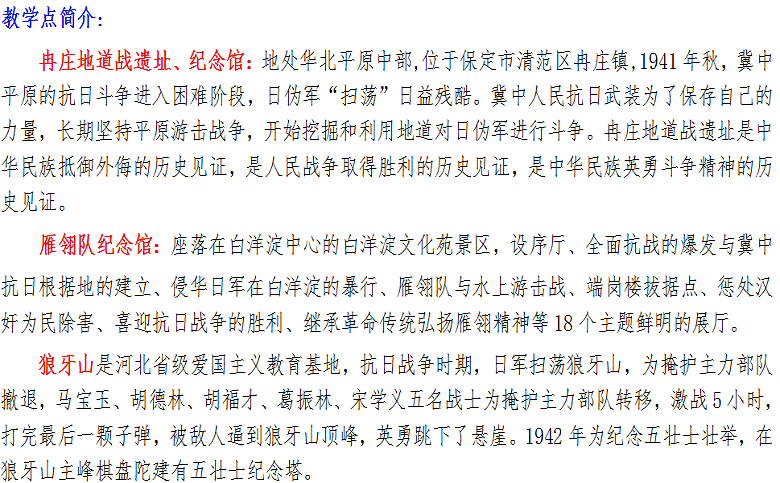 白洋淀雁翎队纪念馆、冉庄地道战纪念馆、狼牙山五壮士纪念馆二日