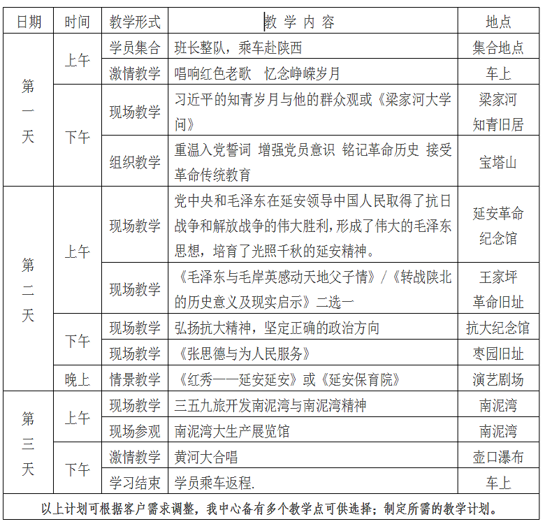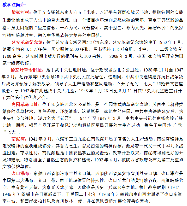 梁家河村、延安、南泥湾、壶口三日