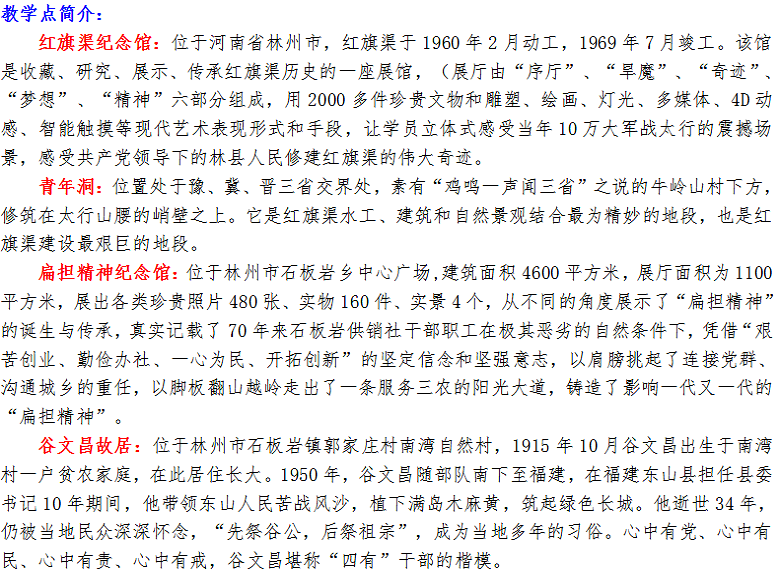 红旗渠展览馆、青年洞、桃花洞村、扁担精神博物馆、谷文昌故居三日