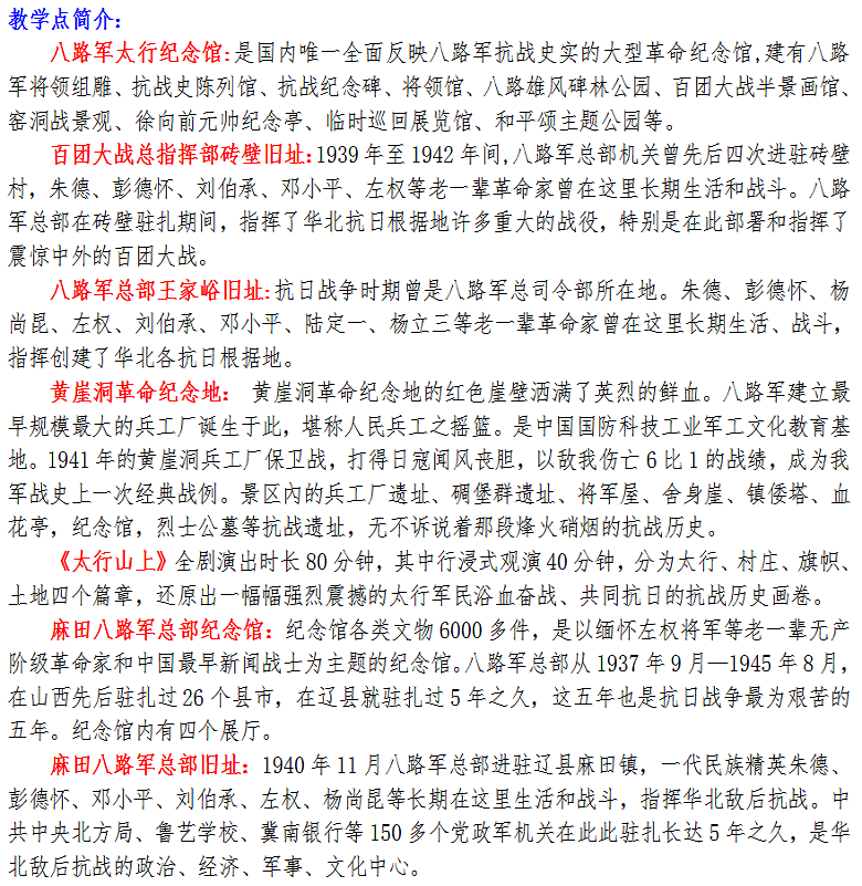 太行纪念馆、砖壁旧址、王家峪旧址、黄崖洞、麻田纪念馆三日