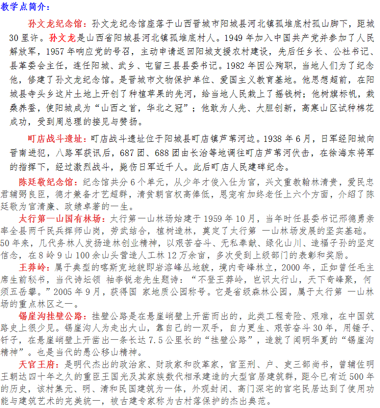町店战斗纪念园、孙文龙纪念馆、皇城相府、王莽岭、锡崖沟三日