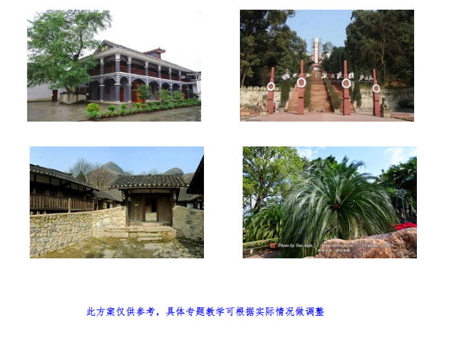 1、现场教学:苟坝会议会址;苟坝会议陈列馆; 2、生态考察:乡愁发源地——花茂村(2015年6月16日习主席视察时,找到乡愁”的地方) |
