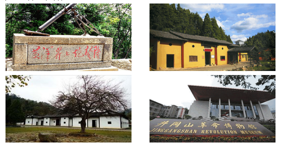 茅坪八角楼:井冈山斗争时期,茅坪是井冈山革命根据地党、政、军领导机关所在地和湘赣边界工农武装割据斗争的指挥中心。同时,红军的后方留守处、医院、被服厂、修械所等后勤机构也设立于此。在这里召开了湘赣边界党的第 一次、第 二次代表大会。毛泽东、朱德、陈毅、谭震林等经常在这里办公和居住。