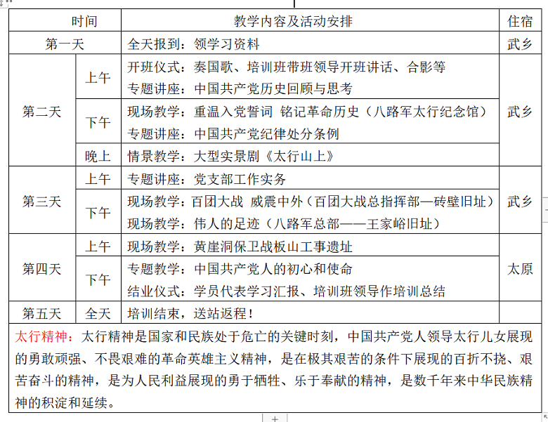 太行精神基地培训学习方案(五日)