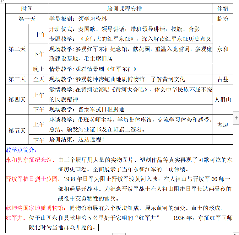 永和东征基地培训学习方案(五日)