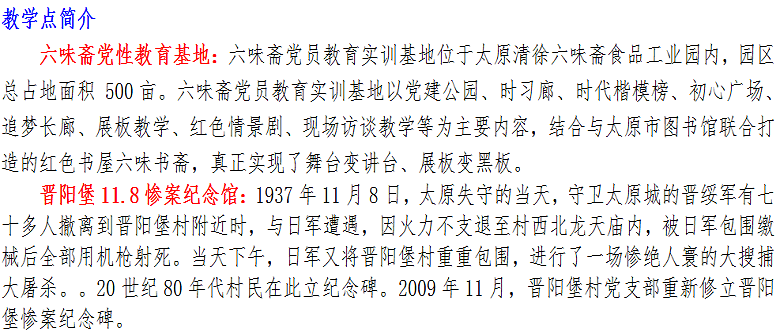 六味斋党性教育基地、晋阳堡11.8惨案纪念馆一日